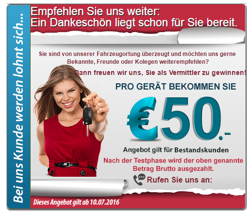 Empfehlen Sie unsere Fahrzeugortung weiter - es lohnt sich für Sie!